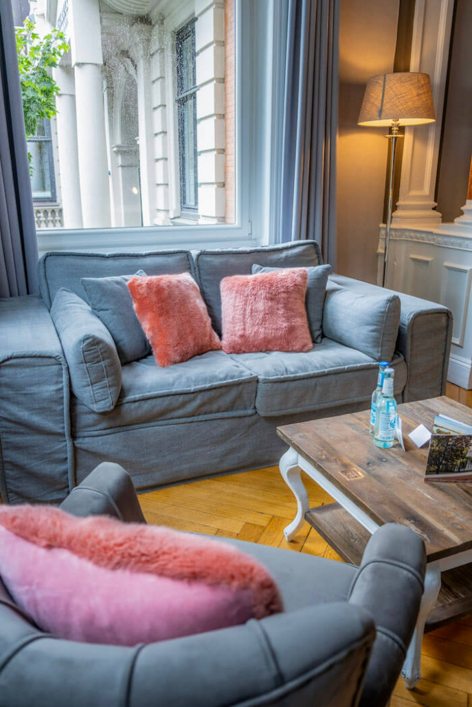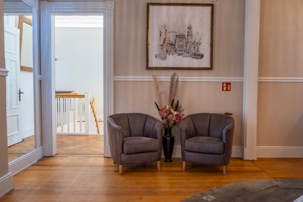 Die Zimmer und Suiten im Hotel Alsterblick sind sehr gemütlich und mit viel Stilgefühl eingerichtet. Jedes Detail wurde sorgfältig durchdacht, um den Gästen höchsten Komfort zu bieten. Das Hotel wurde nach und nach, Zimmer für Zimmer renoviert und neu eingerichtet. So wurde eine Einrichtung von Rivièra Maison mit einem zeitlosen, gemütlichen Design gewählt. Wichtig waren den Hoteliers robuste, aber besondere Stoffe und bequeme Möbelstücke. Schöne Dekoration schafft eine luxuriöse Atmosphäre, in der man sich sofort wohl fühlt. In vielen Räumen sind der originale Stuck und Elemente wie ein schöner Kachelofen erhalten. Die Farbpalette ist dezent und harmonisch, wodurch eine entspannende Wirkung erzielt wird. Der Einrichtungsstil ist ein urbaner Landhausstil. Daher sind Elemente wie authentische Holzoberflächen der Möbel, bequeme Polstermöbel in groben Stoffen und helle, warme Farben ein Muss und hier gut umgesetzt.
