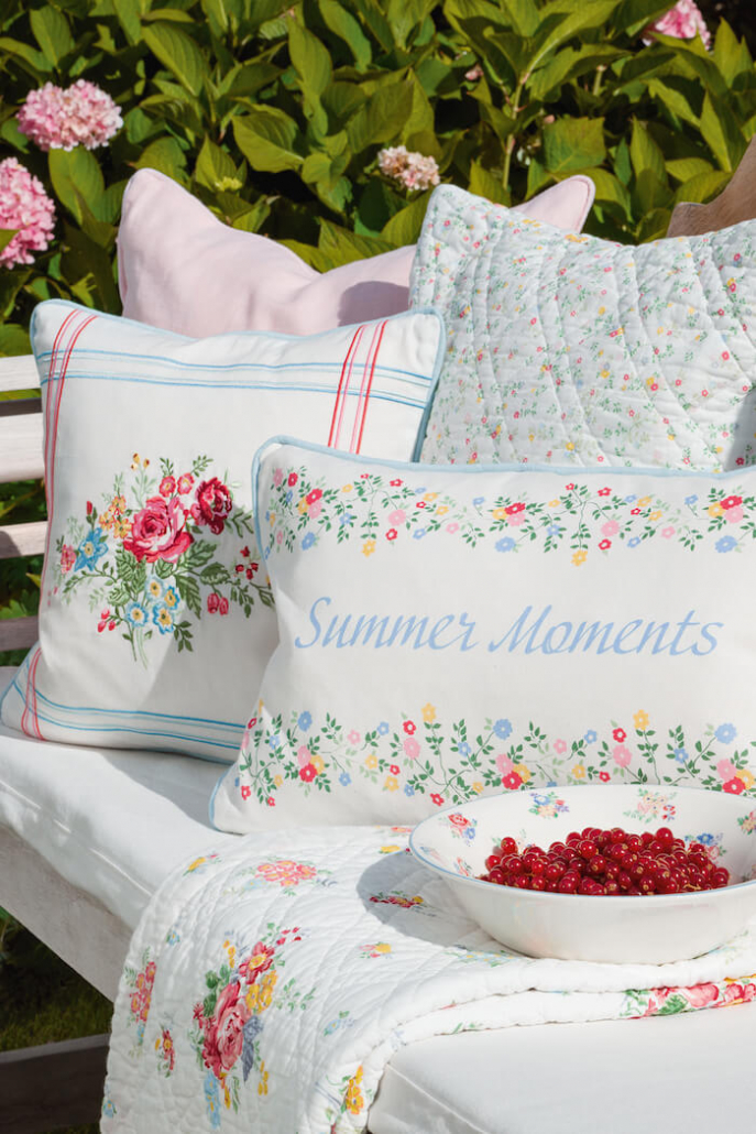 Die Frühling/Sommer Kollektion läutet die helle Jahreszeit alljährlich mit diesen hübschen, hellen Pastelltönen ein und sie machen sofort Lust auf Sommer und das Leben draußen. Helle Baumwollstoffe gehören im Sommer zu GreenGate Geschirrtüchern und Tischwäsche und eine typische GreenGate Kissenhülle hat zu dieser Jahreszeit helle Farben!