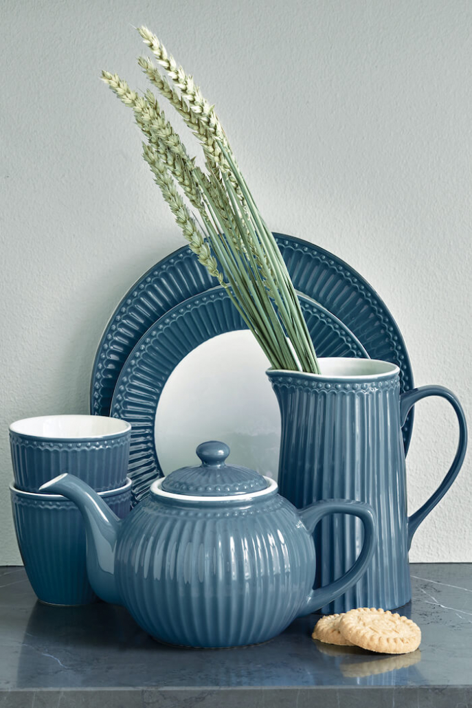 Kombinieren lassen sich Greengate Becher und Tassen mit Tellern und Krügen in unterschiedlichen Farben. Trotzdem sieht es nicht zusammengewürfelt aus, denn die Form verbindet alle Teile. Buntes Geschirr in vielen Farben ist individuell und liegt daher im Trend. Einfach kann man einen ganz eigenen Mix zusammenstellen.