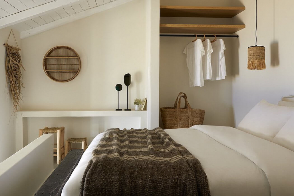 Tine K Schlafzimmer Inspiration mit Bett und reduzierter Wanddekoration