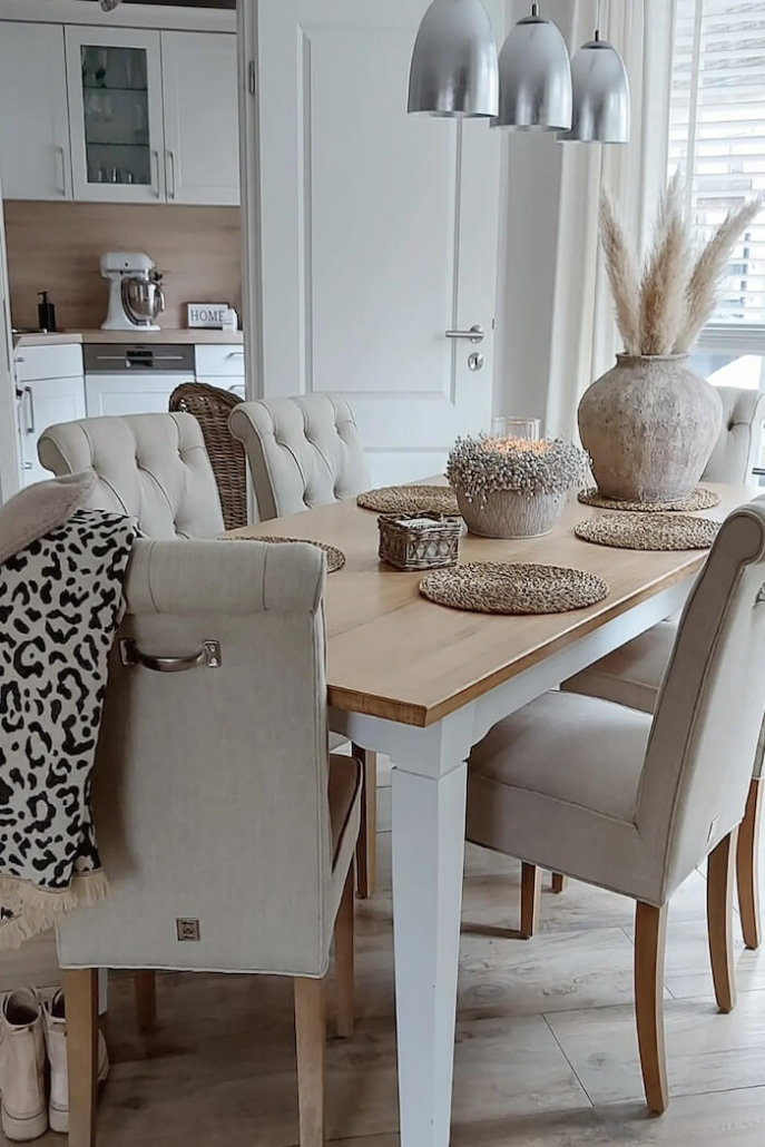 Die Möbelauswahl und deren Anordnung sind für schönes Wohnen von zentraler Bedeutung. Setzen Sie auf bequeme Möbelstücke, die gleichzeitig funktional sind. Ein gut proportioniertes Sofa mit weichen Polstern, begleitet von passenden Sesseln, bildet das Herzstück des Raumes. Achten Sie darauf, ausreichend Bewegungsfreiheit zu lassen, um ein angenehmes Raumgefühl zu bewahren.